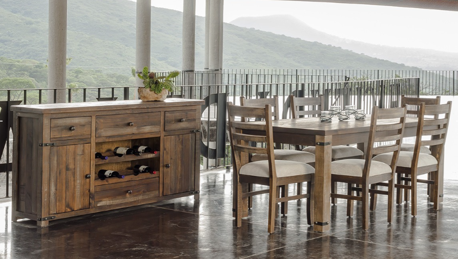 Crafted entirely from solid pine wood, this dining set features a table with an acrylic finish and a robust, all-wood structure. Enhanced by a meticulous nine-layer finish, this elegant collection is designed to elevate the charm of any dining space.